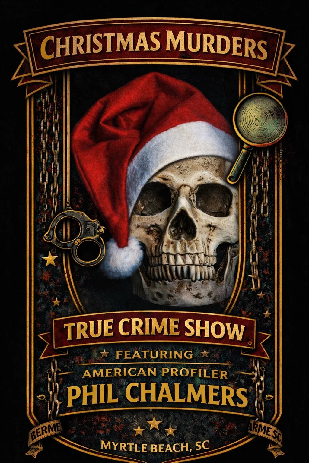 “Christmas Murders” is a unique look at shocking crimes that took place during Christmas and the Holiday season. Complete with a candy cane and nightmares. Hosted by American Profiler Phil Chalmers.