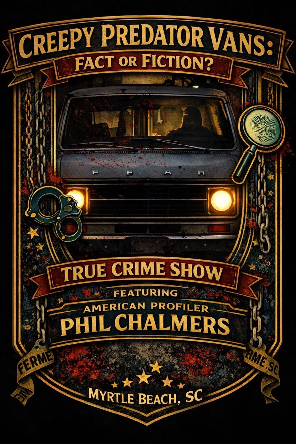 “Creepy Predator Vans: Fact or Fiction.” A deep dive into Serial Killers who use creepy vans to abduct their victims. In this show you will learn about the cases of The Toolbox Killers, The Freeway Killers, The Killing Cousins, and more. Hosted by American Profiler Phil Chalmers.